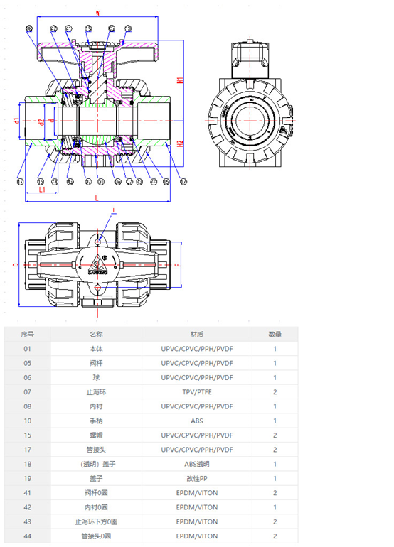 1) 材質(zhì):UPVC,CPVC,PPH,PVDF,HT-CPVC