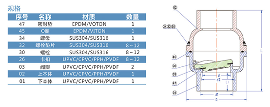 1) 材質(zhì):UPVC,CPVC,PPH,PVDF