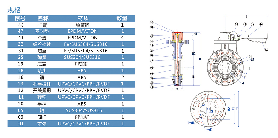 1) 材質(zhì):UPVC,CPVC,PPH,PVDF