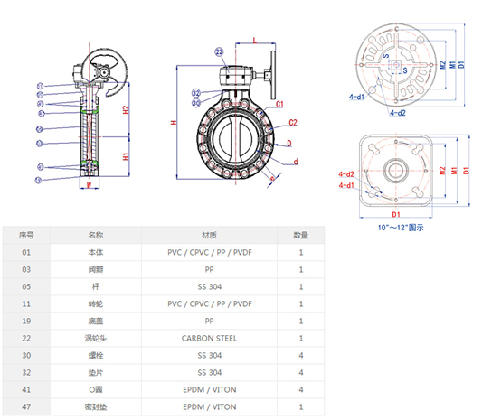 2) 尺寸: 8" - 12"; 225mm - 315mm ; DN200 -