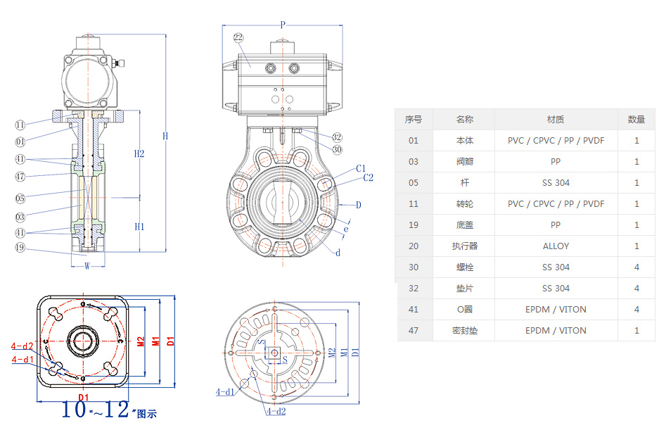 2) 尺寸: 1?" - 12"; 50mm - 315mm ; DN40 - DN300